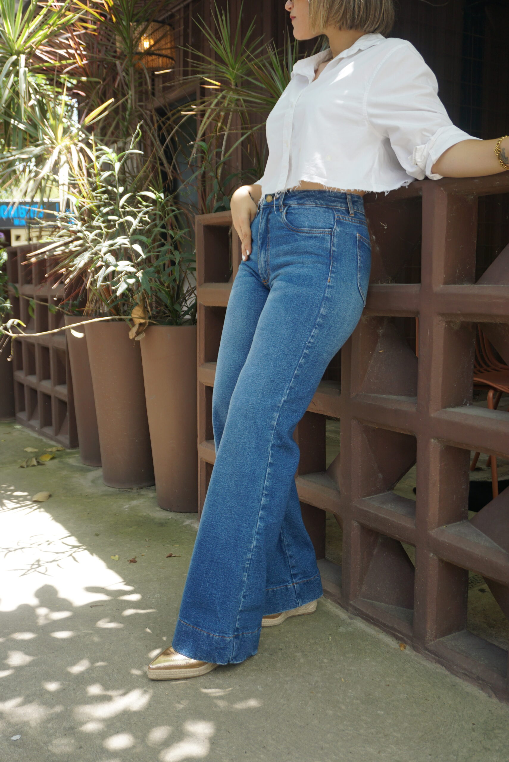 Jean Tipo Wide Leg con CORTE LIMPIO y SILUETA SEMIAJUSTADA.